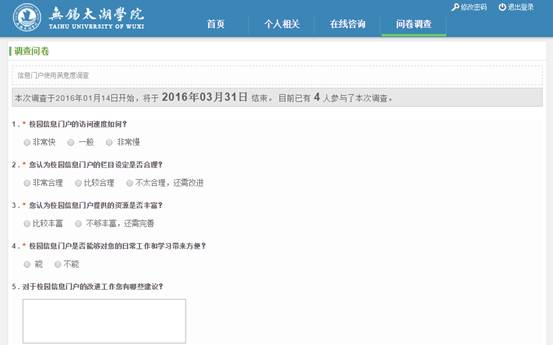 信息门户问卷调查模块可以帮助学校征集相关调查意见,也可以进行一些相关的投票功能。