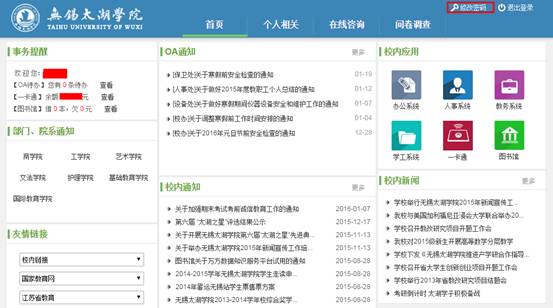 首次登录门户后请修改初始密码,点击首页右上角“修改密码”,输入自己的原密码和新密码保存即可。