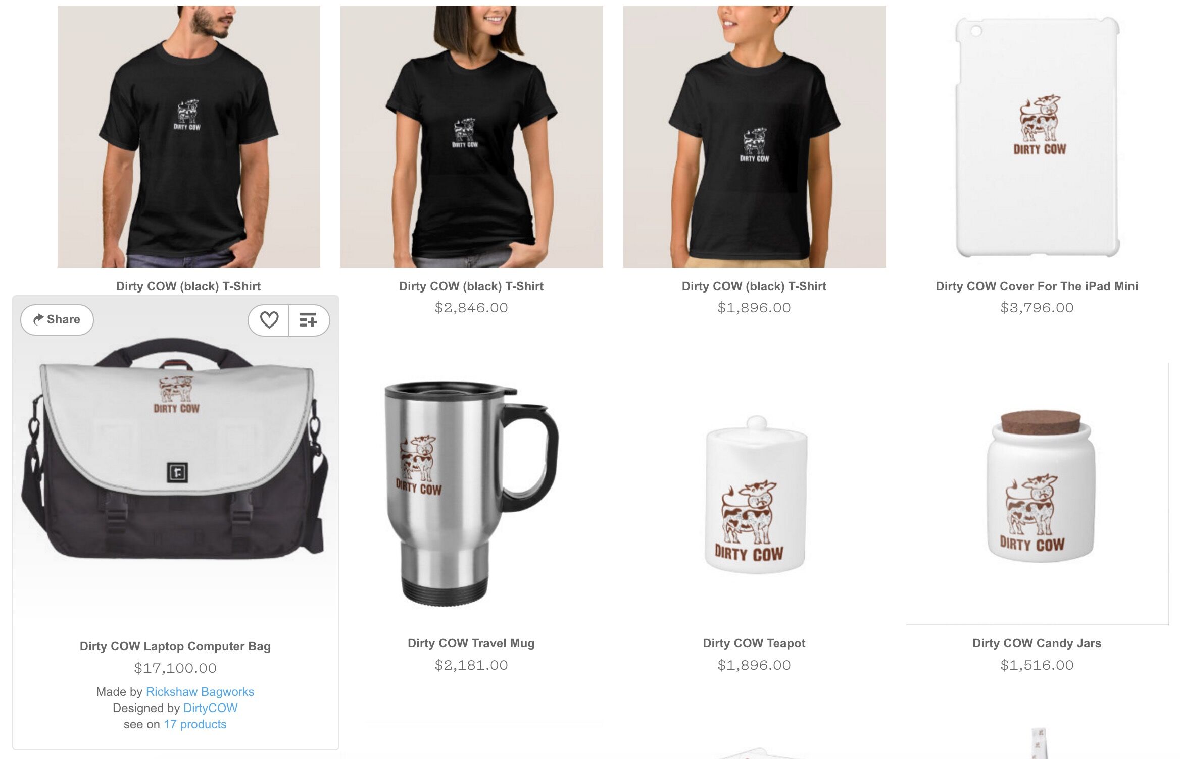 发现该漏洞的安全研究人员认为,某些安全公司过度夸大了这个漏洞的危害——为了嘲讽了那些夸大此漏洞的人,他们特别为“脏牛”做了logo和主页,设了推特账户,还开了个网店,店里的电脑包售价仅在1.71万美元(上万了呢),上面有脏牛的LOGO哦,算是相当有诚意的周边。